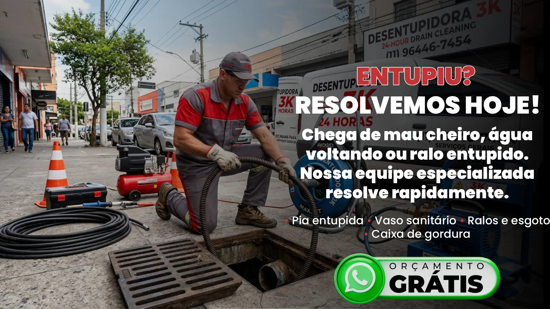 Quem chama a Desentupidora 3K resolve o problema de verdade.