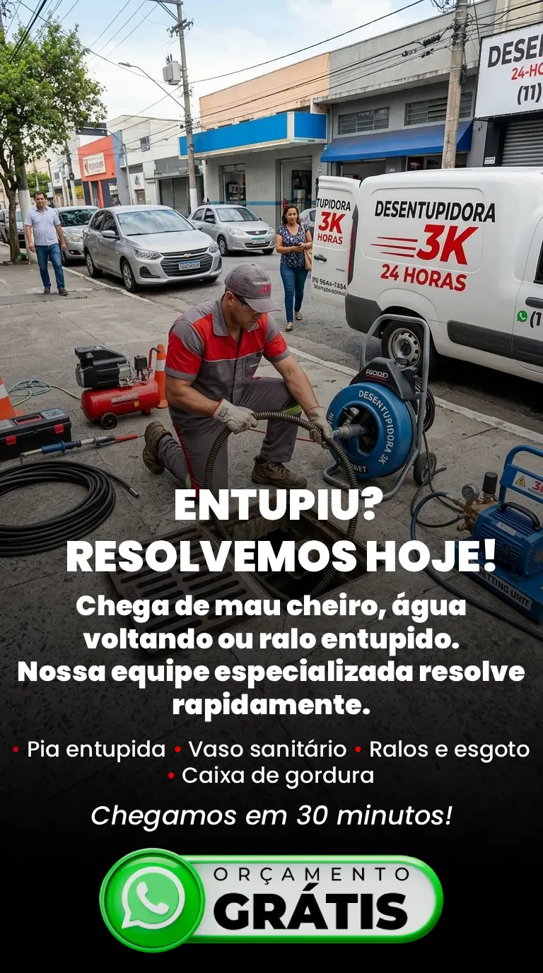 A Desentupidora 3K é a sua solução definitiva em São Paulo. Unimos tecnologia de ponta e especialistas prontos para eliminar qualquer obstrução com agilidade extrema, limpeza total e o orçamento que cabe no seu bolso.